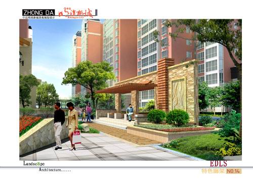 根據建筑設計的表現形式和建筑在園區內的位置關系.結合整個大環境的各種關系和豫西南地區特有的氣候特點,植物生長狀況,人文景觀等,再結合現代人追求健康生態、清新中富于變化的審美要求,讓傳統元素與現代元素完美地結合起來.營造出一個溫馨的居住環境。具體體現為景觀與建筑協調統一,環境景觀設計能夠滿足社區的功能需要和住宅環境的高品質追求.